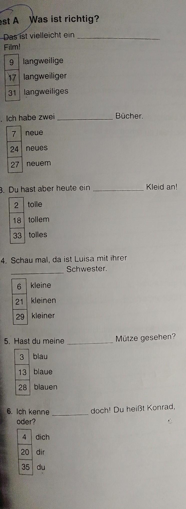 Вы перешли к вопросу Пж поможіть , поможіть7?. Он относится к категории Немецкий язык, для 5 - 9 классов. Здесь размещен ответ по заданным параметрам. Если этот вариант ответа не полностью вас удовлетворяет, то с помощью автоматического умного поиска можно найти другие вопросы по этой же теме, в категории Немецкий язык. В случае если ответы на похожие вопросы не раскрывают в полном объеме необходимую информацию, то воспользуйтесь кнопкой в верхней части сайта и сформулируйте свой вопрос иначе. Также на этой странице вы сможете ознакомиться с вариантами ответов пользователей.